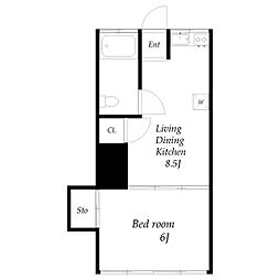 1DK:DK部分が8畳未満