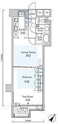 1DK:DK部分が8畳未満
