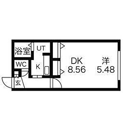 1DK:DK部分が8畳未満
