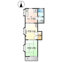 高知市東城山町 2K 2F(角部屋・南向き)