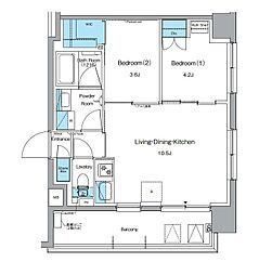 2LDKの間取りの中には、住戸内に階段を設けている2階建てタイプのメゾネット型もあります。デザイナーズマンションでよく見られる間取りですが、下の階にLDKとお風呂、トイレなどの水回りを配置し、上の階に2つの居室を配置している間取りが一般的です。