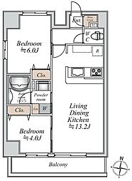 2LDKの間取りの中には、住戸内に階段を設けている2階建てタイプのメゾネット型もあります。デザイナーズマンションでよく見られる間取りですが、下の階にLDKとお風呂、トイレなどの水回りを配置し、上の階に2つの居室を配置している間取りが一般的です。