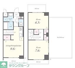 2LDKの間取りの中には、住戸内に階段を設けている2階建てタイプのメゾネット型もあります。デザイナーズマンションでよく見られる間取りですが、下の階にLDKとお風呂、トイレなどの水回りを配置し、上の階に2つの居室を配置している間取りが一般的です。