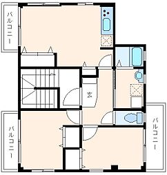 2LDKの間取りの中には、住戸内に階段を設けている2階建てタイプのメゾネット型もあります。デザイナーズマンションでよく見られる間取りですが、下の階にLDKとお風呂、トイレなどの水回りを配置し、上の階に2つの居室を配置している間取りが一般的です。