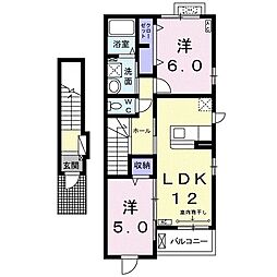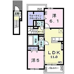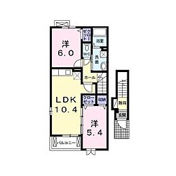 2LDKの間取りの中には、住戸内に階段を設けている2階建てタイプのメゾネット型もあります。デザイナーズマンションでよく見られる間取りですが、下の階にLDKとお風呂、トイレなどの水回りを配置し、上の階に2つの居室を配置している間取りが一般的です。
