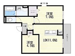 2LDKの間取りの中には、住戸内に階段を設けている2階建てタイプのメゾネット型もあります。デザイナーズマンションでよく見られる間取りですが、下の階にLDKとお風呂、トイレなどの水回りを配置し、上の階に2つの居室を配置している間取りが一般的です。