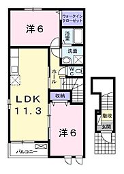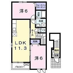 2LDKの間取りの中には、住戸内に階段を設けている2階建てタイプのメゾネット型もあります。デザイナーズマンションでよく見られる間取りですが、下の階にLDKとお風呂、トイレなどの水回りを配置し、上の階に2つの居室を配置している間取りが一般的です。