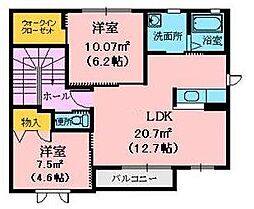 2LDKの間取りの中には、住戸内に階段を設けている2階建てタイプのメゾネット型もあります。デザイナーズマンションでよく見られる間取りですが、下の階にLDKとお風呂、トイレなどの水回りを配置し、上の階に2つの居室を配置している間取りが一般的です。