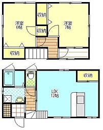 2LDKの間取りの中には、住戸内に階段を設けている2階建てタイプのメゾネット型もあります。デザイナーズマンションでよく見られる間取りですが、下の階にLDKとお風呂、トイレなどの水回りを配置し、上の階に2つの居室を配置している間取りが一般的です。