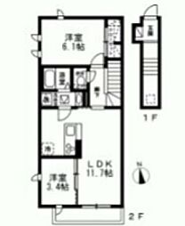 2LDKの間取りの中には、住戸内に階段を設けている2階建てタイプのメゾネット型もあります。デザイナーズマンションでよく見られる間取りですが、下の階にLDKとお風呂、トイレなどの水回りを配置し、上の階に2つの居室を配置している間取りが一般的です。