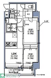 2LDKの間取りの中には、住戸内に階段を設けている2階建てタイプのメゾネット型もあります。デザイナーズマンションでよく見られる間取りですが、下の階にLDKとお風呂、トイレなどの水回りを配置し、上の階に2つの居室を配置している間取りが一般的です。