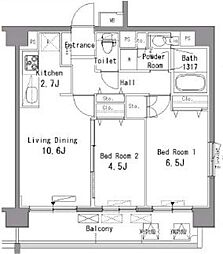 2LDKの間取りの中には、住戸内に階段を設けている2階建てタイプのメゾネット型もあります。デザイナーズマンションでよく見られる間取りですが、下の階にLDKとお風呂、トイレなどの水回りを配置し、上の階に2つの居室を配置している間取りが一般的です。