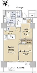 2LDKの間取りの中には、住戸内に階段を設けている2階建てタイプのメゾネット型もあります。デザイナーズマンションでよく見られる間取りですが、下の階にLDKとお風呂、トイレなどの水回りを配置し、上の階に2つの居室を配置している間取りが一般的です。