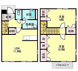 2LDKの間取りの中には、住戸内に階段を設けている2階建てタイプのメゾネット型もあります。デザイナーズマンションでよく見られる間取りですが、下の階にLDKとお風呂、トイレなどの水回りを配置し、上の階に2つの居室を配置している間取りが一般的です。