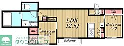 2LDKの間取りの中には、住戸内に階段を設けている2階建てタイプのメゾネット型もあります。デザイナーズマンションでよく見られる間取りですが、下の階にLDKとお風呂、トイレなどの水回りを配置し、上の階に2つの居室を配置している間取りが一般的です。