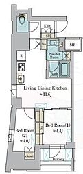 2LDKの間取りの中には、住戸内に階段を設けている2階建てタイプのメゾネット型もあります。デザイナーズマンションでよく見られる間取りですが、下の階にLDKとお風呂、トイレなどの水回りを配置し、上の階に2つの居室を配置している間取りが一般的です。