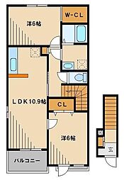 2LDKの間取りの中には、住戸内に階段を設けている2階建てタイプのメゾネット型もあります。デザイナーズマンションでよく見られる間取りですが、下の階にLDKとお風呂、トイレなどの水回りを配置し、上の階に2つの居室を配置している間取りが一般的です。