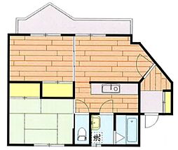 2LDKの間取りの中には、住戸内に階段を設けている2階建てタイプのメゾネット型もあります。デザイナーズマンションでよく見られる間取りですが、下の階にLDKとお風呂、トイレなどの水回りを配置し、上の階に2つの居室を配置している間取りが一般的です。
