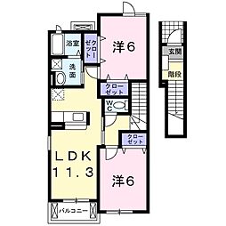 2LDKの間取りの中には、住戸内に階段を設けている2階建てタイプのメゾネット型もあります。デザイナーズマンションでよく見られる間取りですが、下の階にLDKとお風呂、トイレなどの水回りを配置し、上の階に2つの居室を配置している間取りが一般的です。