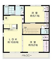 2LDKの間取りの中には、住戸内に階段を設けている2階建てタイプのメゾネット型もあります。デザイナーズマンションでよく見られる間取りですが、下の階にLDKとお風呂、トイレなどの水回りを配置し、上の階に2つの居室を配置している間取りが一般的です。