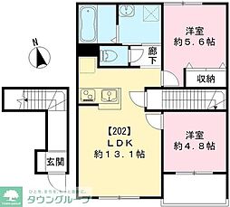 2LDKの間取りの中には、住戸内に階段を設けている2階建てタイプのメゾネット型もあります。デザイナーズマンションでよく見られる間取りですが、下の階にLDKとお風呂、トイレなどの水回りを配置し、上の階に2つの居室を配置している間取りが一般的です。
