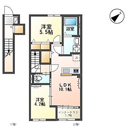 2LDKの間取りの中には、住戸内に階段を設けている2階建てタイプのメゾネット型もあります。デザイナーズマンションでよく見られる間取りですが、下の階にLDKとお風呂、トイレなどの水回りを配置し、上の階に2つの居室を配置している間取りが一般的です。