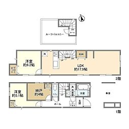 2LDKの間取りの中には、住戸内に階段を設けている2階建てタイプのメゾネット型もあります。デザイナーズマンションでよく見られる間取りですが、下の階にLDKとお風呂、トイレなどの水回りを配置し、上の階に2つの居室を配置している間取りが一般的です。