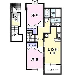 2LDKの間取りの中には、住戸内に階段を設けている2階建てタイプのメゾネット型もあります。デザイナーズマンションでよく見られる間取りですが、下の階にLDKとお風呂、トイレなどの水回りを配置し、上の階に2つの居室を配置している間取りが一般的です。