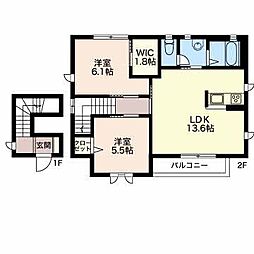 2LDKの間取りの中には、住戸内に階段を設けている2階建てタイプのメゾネット型もあります。デザイナーズマンションでよく見られる間取りですが、下の階にLDKとお風呂、トイレなどの水回りを配置し、上の階に2つの居室を配置している間取りが一般的です。