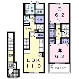 2LDKの間取りの中には、住戸内に階段を設けている2階建てタイプのメゾネット型もあります。デザイナーズマンションでよく見られる間取りですが、下の階にLDKとお風呂、トイレなどの水回りを配置し、上の階に2つの居室を配置している間取りが一般的です。