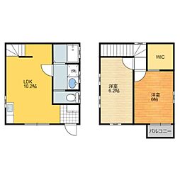 2LDKの間取りの中には、住戸内に階段を設けている2階建てタイプのメゾネット型もあります。デザイナーズマンションでよく見られる間取りですが、下の階にLDKとお風呂、トイレなどの水回りを配置し、上の階に2つの居室を配置している間取りが一般的です。