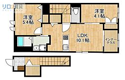 2LDKの間取りの中には、住戸内に階段を設けている2階建てタイプのメゾネット型もあります。デザイナーズマンションでよく見られる間取りですが、下の階にLDKとお風呂、トイレなどの水回りを配置し、上の階に2つの居室を配置している間取りが一般的です。