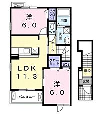 2LDKの間取りの中には、住戸内に階段を設けている2階建てタイプのメゾネット型もあります。デザイナーズマンションでよく見られる間取りですが、下の階にLDKとお風呂、トイレなどの水回りを配置し、上の階に2つの居室を配置している間取りが一般的です。