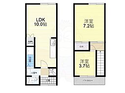 2LDKの間取りの中には、住戸内に階段を設けている2階建てタイプのメゾネット型もあります。デザイナーズマンションでよく見られる間取りですが、下の階にLDKとお風呂、トイレなどの水回りを配置し、上の階に2つの居室を配置している間取りが一般的です。