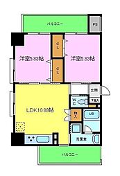 2LDKの間取りの中には、住戸内に階段を設けている2階建てタイプのメゾネット型もあります。デザイナーズマンションでよく見られる間取りですが、下の階にLDKとお風呂、トイレなどの水回りを配置し、上の階に2つの居室を配置している間取りが一般的です。