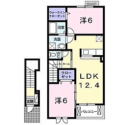 2LDKの間取りの中には、住戸内に階段を設けている2階建てタイプのメゾネット型もあります。デザイナーズマンションでよく見られる間取りですが、下の階にLDKとお風呂、トイレなどの水回りを配置し、上の階に2つの居室を配置している間取りが一般的です。