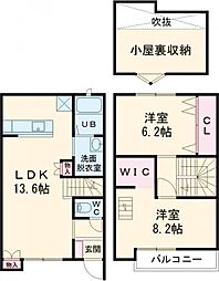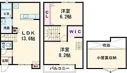 2LDKの間取りの中には、住戸内に階段を設けている2階建てタイプのメゾネット型もあります。デザイナーズマンションでよく見られる間取りですが、下の階にLDKとお風呂、トイレなどの水回りを配置し、上の階に2つの居室を配置している間取りが一般的です。