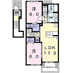 2LDKの間取りの中には、住戸内に階段を設けている2階建てタイプのメゾネット型もあります。デザイナーズマンションでよく見られる間取りですが、下の階にLDKとお風呂、トイレなどの水回りを配置し、上の階に2つの居室を配置している間取りが一般的です。