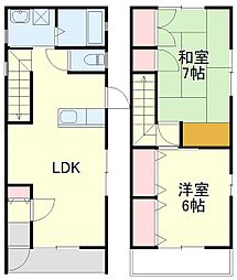 2LDKの間取りの中には、住戸内に階段を設けている2階建てタイプのメゾネット型もあります。デザイナーズマンションでよく見られる間取りですが、下の階にLDKとお風呂、トイレなどの水回りを配置し、上の階に2つの居室を配置している間取りが一般的です。