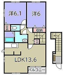 2LDKの間取りの中には、住戸内に階段を設けている2階建てタイプのメゾネット型もあります。デザイナーズマンションでよく見られる間取りですが、下の階にLDKとお風呂、トイレなどの水回りを配置し、上の階に2つの居室を配置している間取りが一般的です。
