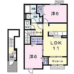 2LDKの間取りの中には、住戸内に階段を設けている2階建てタイプのメゾネット型もあります。デザイナーズマンションでよく見られる間取りですが、下の階にLDKとお風呂、トイレなどの水回りを配置し、上の階に2つの居室を配置している間取りが一般的です。
