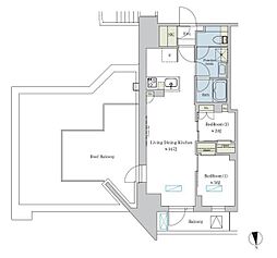 2LDKの間取りの中には、住戸内に階段を設けている2階建てタイプのメゾネット型もあります。デザイナーズマンションでよく見られる間取りですが、下の階にLDKとお風呂、トイレなどの水回りを配置し、上の階に2つの居室を配置している間取りが一般的です。