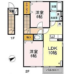 2LDKの間取りの中には、住戸内に階段を設けている2階建てタイプのメゾネット型もあります。デザイナーズマンションでよく見られる間取りですが、下の階にLDKとお風呂、トイレなどの水回りを配置し、上の階に2つの居室を配置している間取りが一般的です。