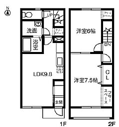 2LDKの間取りの中には、住戸内に階段を設けている2階建てタイプのメゾネット型もあります。デザイナーズマンションでよく見られる間取りですが、下の階にLDKとお風呂、トイレなどの水回りを配置し、上の階に2つの居室を配置している間取りが一般的です。