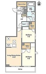 2LDKの間取りの中には、住戸内に階段を設けている2階建てタイプのメゾネット型もあります。デザイナーズマンションでよく見られる間取りですが、下の階にLDKとお風呂、トイレなどの水回りを配置し、上の階に2つの居室を配置している間取りが一般的です。