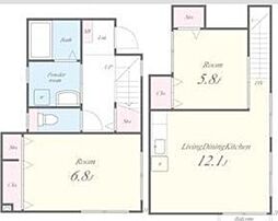 2LDKの間取りの中には、住戸内に階段を設けている2階建てタイプのメゾネット型もあります。デザイナーズマンションでよく見られる間取りですが、下の階にLDKとお風呂、トイレなどの水回りを配置し、上の階に2つの居室を配置している間取りが一般的です。