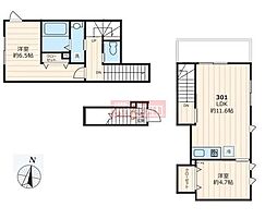 2LDKの間取りの中には、住戸内に階段を設けている2階建てタイプのメゾネット型もあります。デザイナーズマンションでよく見られる間取りですが、下の階にLDKとお風呂、トイレなどの水回りを配置し、上の階に2つの居室を配置している間取りが一般的です。