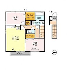 2LDKの間取りの中には、住戸内に階段を設けている2階建てタイプのメゾネット型もあります。デザイナーズマンションでよく見られる間取りですが、下の階にLDKとお風呂、トイレなどの水回りを配置し、上の階に2つの居室を配置している間取りが一般的です。