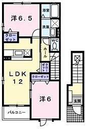 2LDKの間取りの中には、住戸内に階段を設けている2階建てタイプのメゾネット型もあります。デザイナーズマンションでよく見られる間取りですが、下の階にLDKとお風呂、トイレなどの水回りを配置し、上の階に2つの居室を配置している間取りが一般的です。