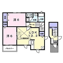 2LDKの間取りの中には、住戸内に階段を設けている2階建てタイプのメゾネット型もあります。デザイナーズマンションでよく見られる間取りですが、下の階にLDKとお風呂、トイレなどの水回りを配置し、上の階に2つの居室を配置している間取りが一般的です。